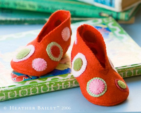 7. Oh my. Those are great. I feel some bootie making coming on. And I was just struggling with some knitted booties not two nights ago and thinking I wish I had a cute felt/sewing pattern instead. Thanks!